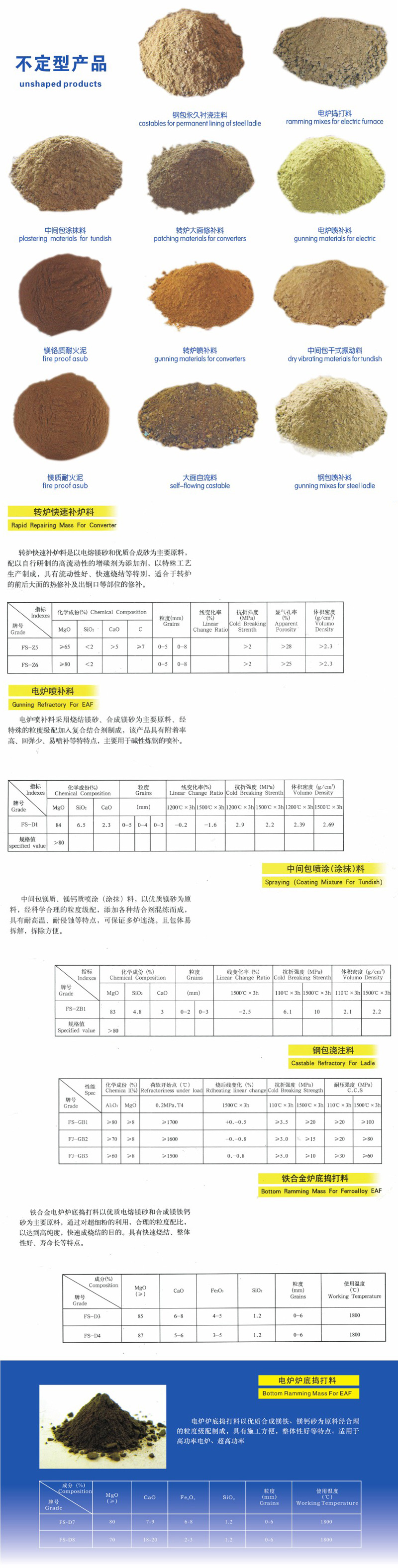 Unshaped refractory material products |